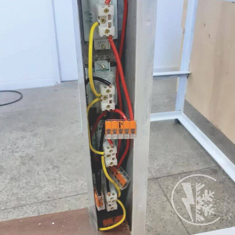 Serviço de ligação de tomadas em torre de balcão frigorífico. Fábrica de sorvete em Santo Cristo.